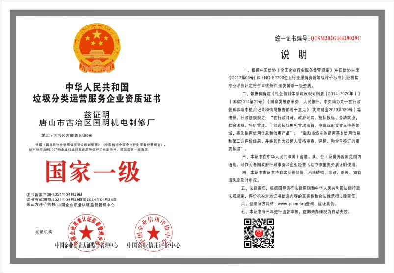 当前位置:首页 > 证书查询 > 唐山市古冶区国明机电制修厂