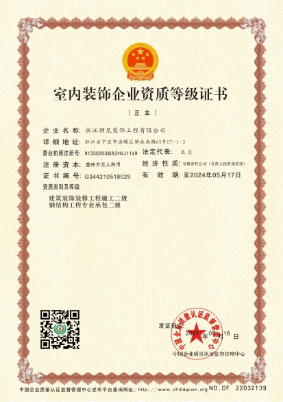 当前位置:首页 > 证书查询 > 浙江预见装饰工程有限公司