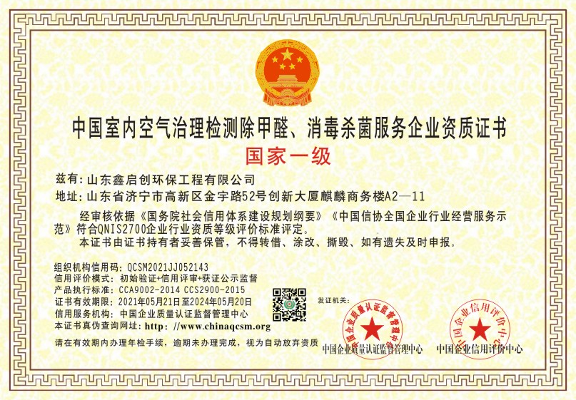 当前位置:首页 > 证书查询 > 山东鑫启创环保工程有限公司