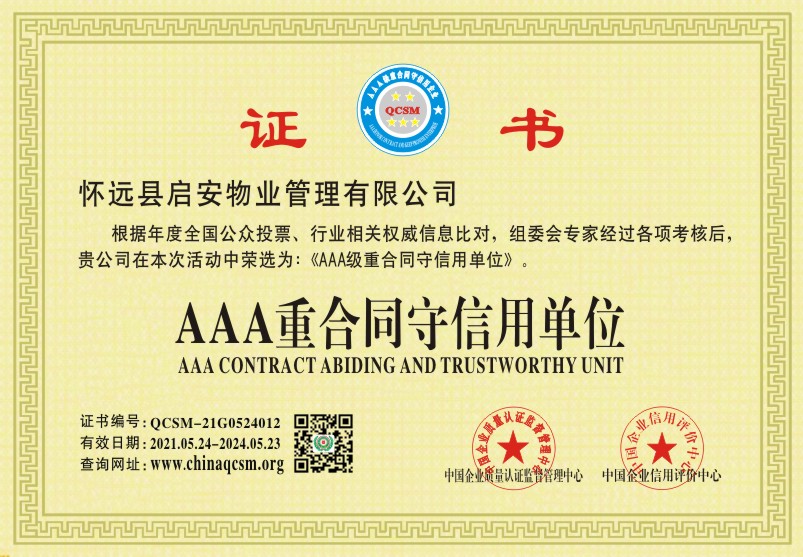 当前位置:首页 > 证书查询 > 怀远县启安物业管理有限公司