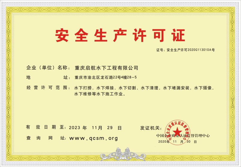 当前位置:首页 > 证书查询 > 重庆启航水下工程有限公司