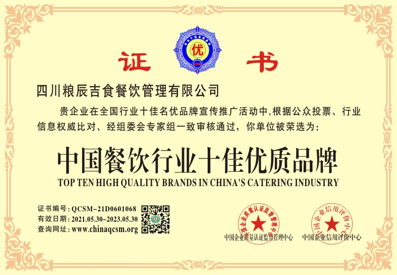 当前位置:首页 > 证书查询 > 四川粮辰吉食餐饮管理有限公司