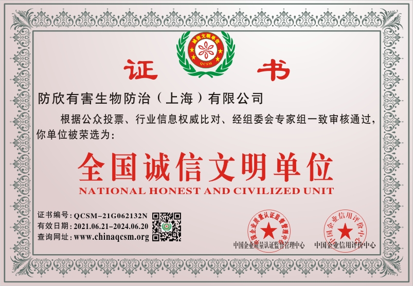 当前位置:首页 > 证书查询 > 防欣有害生物防治(上海)有限公司