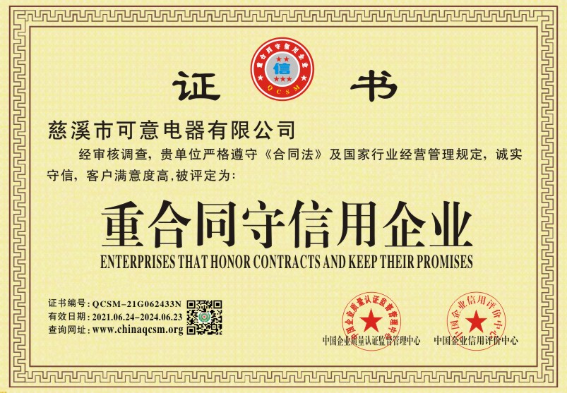 当前位置:首页 > 证书查询 > 慈溪市可意电器有限公司