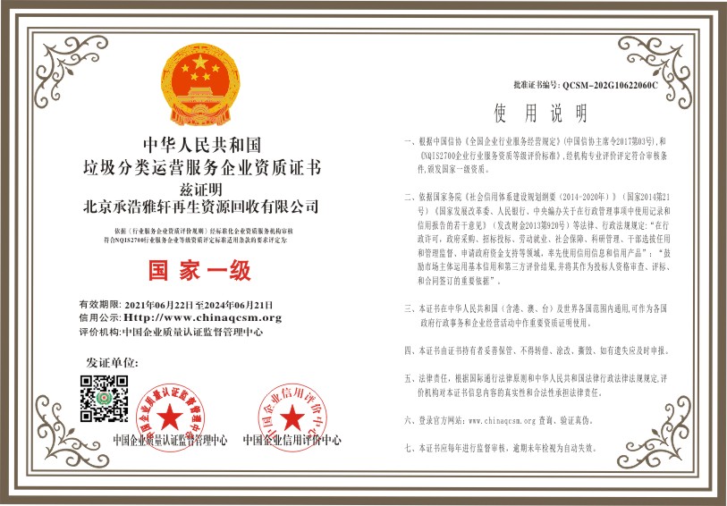 当前位置:首页 > 证书查询 > 北京承浩雅轩再生资源回收有限公司
