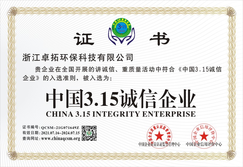 当前位置:首页 > 证书查询 > 浙江卓拓环保科技有限公司