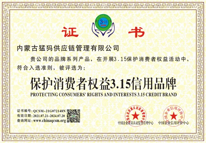 当前位置:首页 > 证书查询 > 内蒙古猛犸供应链管理有限公司