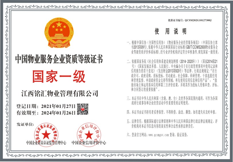 当前位置:首页 > 证书查询 > 江西铭汇物业管理有限公司