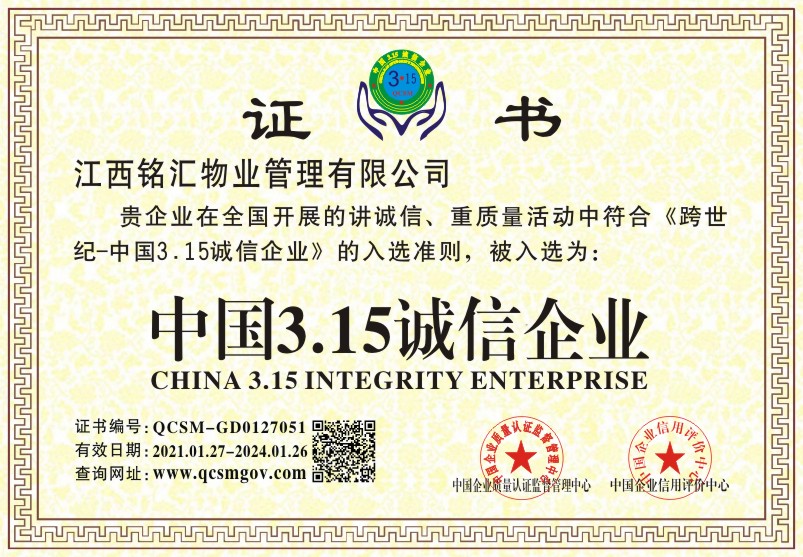 当前位置:首页 > 证书查询 > 江西铭汇物业管理有限公司