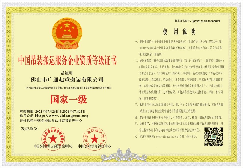 当前位置:首页 > 证书查询 > 佛山市广通起重搬运有限公司