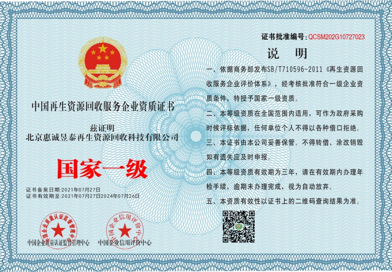 当前位置:首页 > 证书查询 > 北京惠诚昱泰再生资源回收科技有限公司