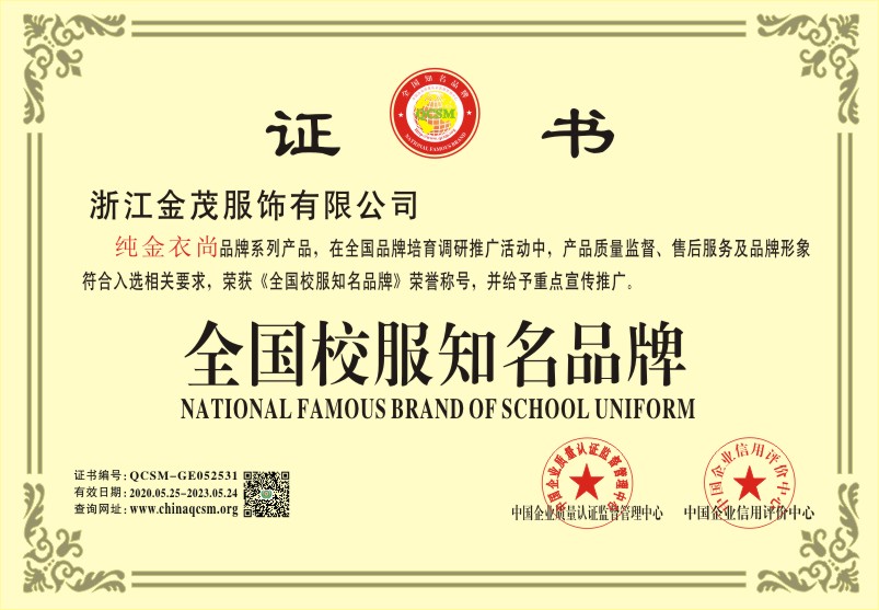 当前位置:首页 > 证书查询 > 浙江金茂服饰有限公司