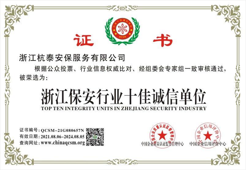当前位置:首页 > 证书查询 > 浙江杭泰安保服务有限公司