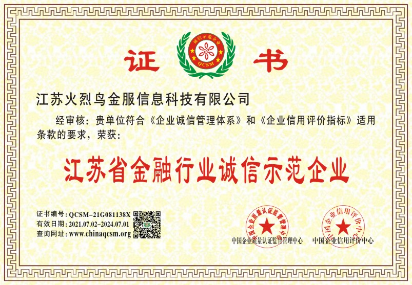 当前位置:首页 > 证书查询 > 江苏火烈鸟金服信息科技有限公司
