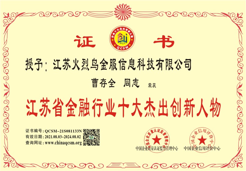 当前位置:首页 > 证书查询 > 江苏火烈鸟金服信息科技有限公司