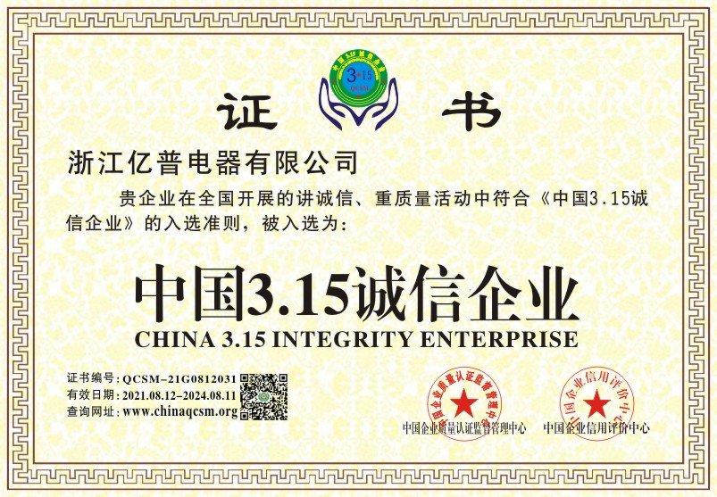 当前位置:首页 > 证书查询 > 浙江亿普电器有限公司