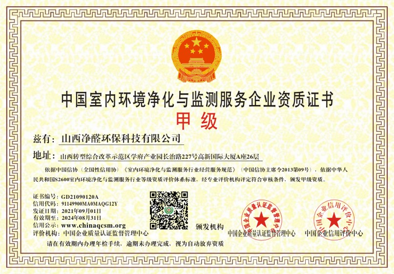 当前位置:首页 > 证书查询 > 山西净醛环保科技有限公司