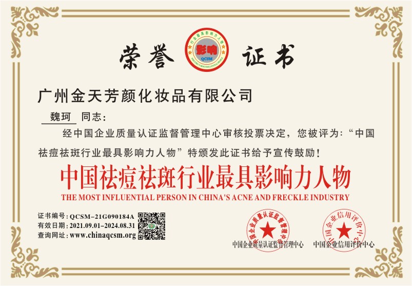 当前位置:首页 > 证书查询 > 广州金天芳颜化妆品有限公司