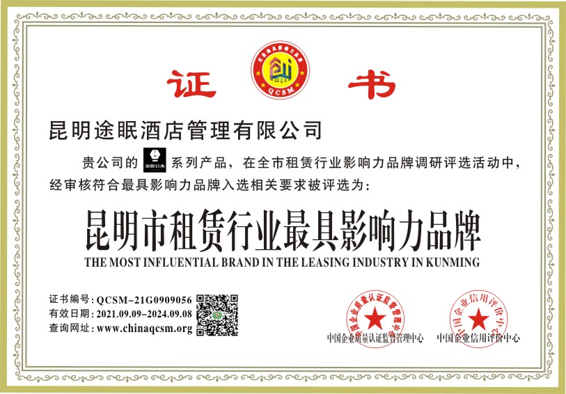 当前位置:首页 > 证书查询 > 昆明途眠酒店管理有限公司