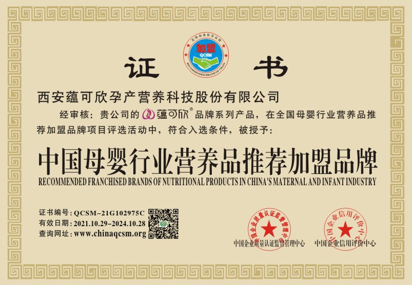 当前位置:首页 > 证书查询 > 西安蕴可欣孕产营养科技股份有限公司