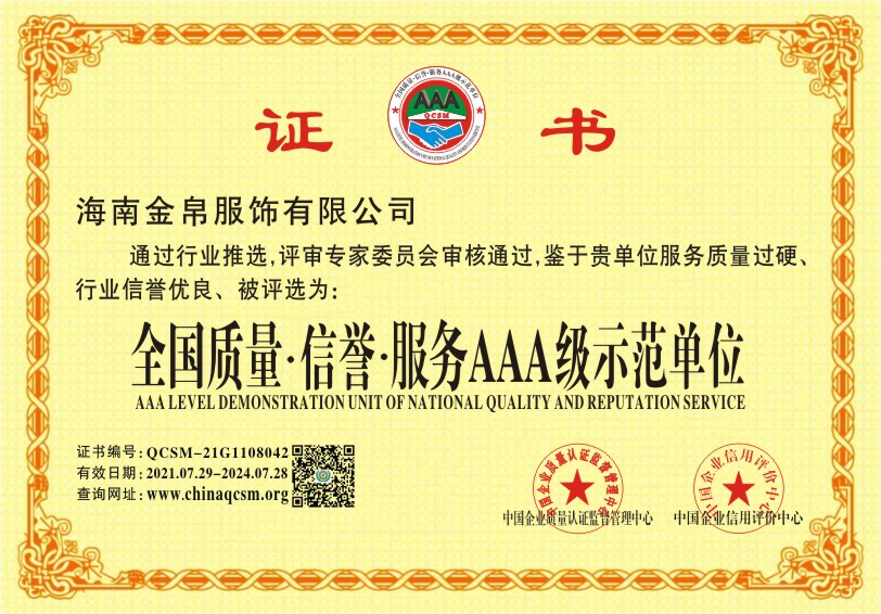当前位置:首页 > 证书查询 > 海南金帛服饰有限公司
