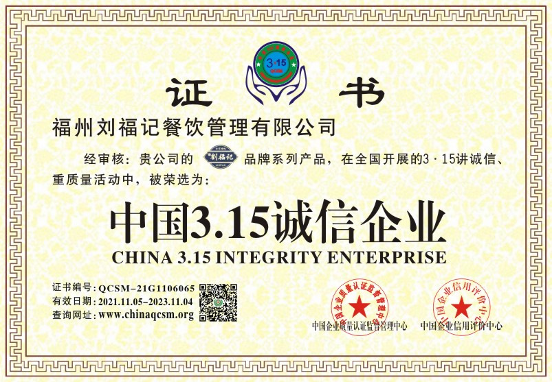 当前位置:首页 > 证书查询 > 福州刘福记餐饮管理有限公司