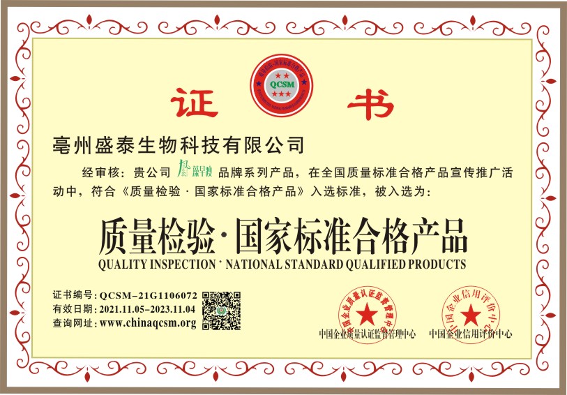 当前位置:首页 > 证书查询 > 亳州盛泰生物科技有限公司