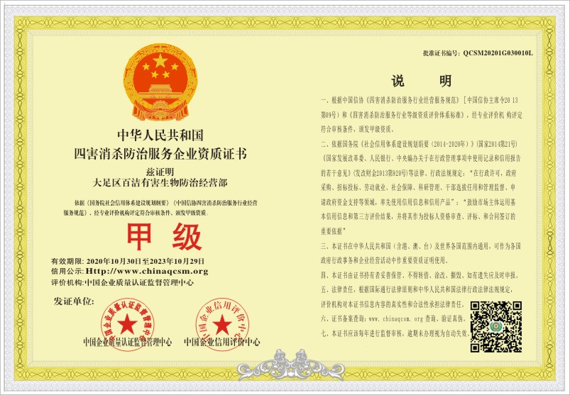 当前位置:首页 > 证书查询 > 大足区百洁有害生物防治经营部