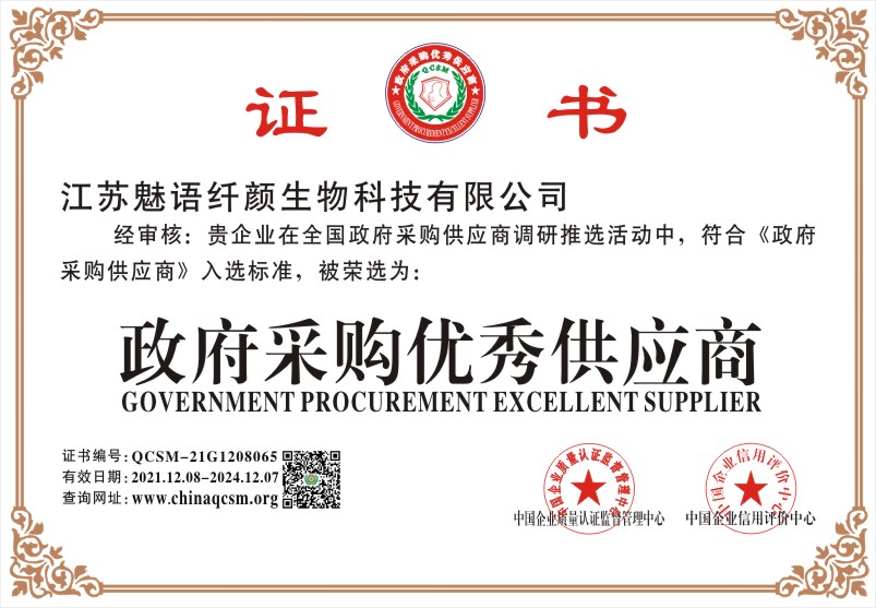 当前位置:首页 > 证书查询 > 江苏魅语纤颜生物科技有限公司