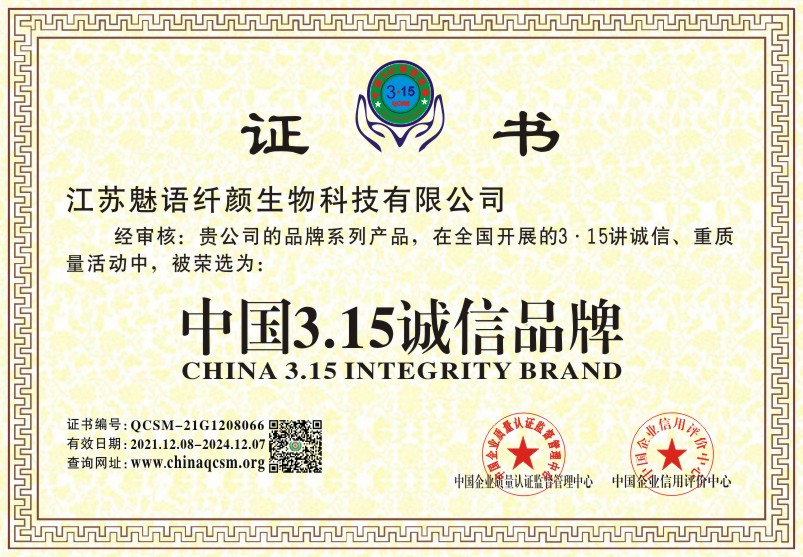 当前位置:首页 > 证书查询 > 江苏魅语纤颜生物科技有限公司