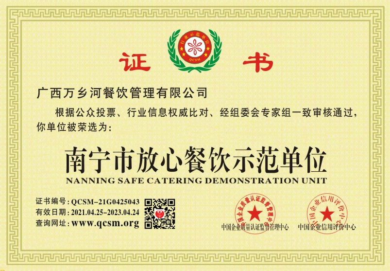 当前位置:首页 > 证书查询 > 广西万乡河餐饮管理有限公司