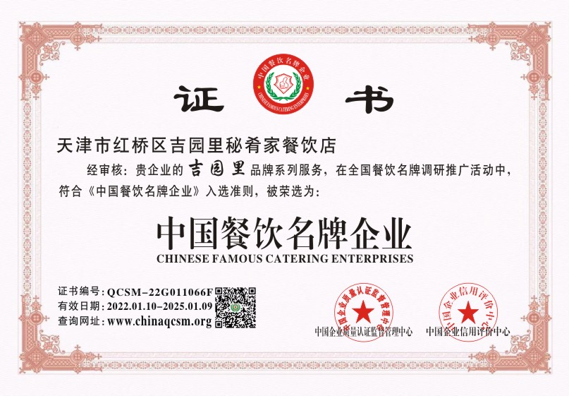 当前位置:首页 > 证书查询 > 天津市红桥区吉园里秘肴家餐饮店