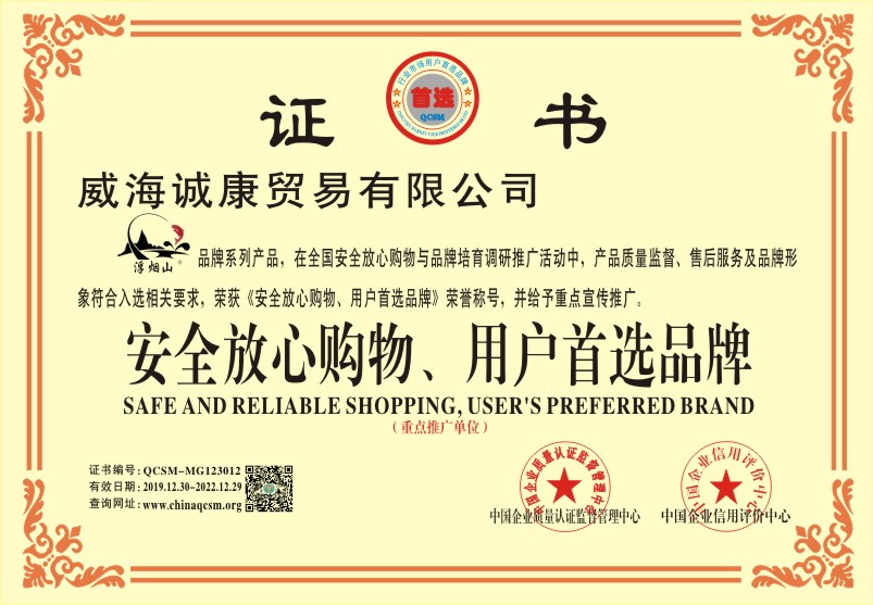 当前位置:首页 > 证书查询 > 威海诚康贸易有限公司