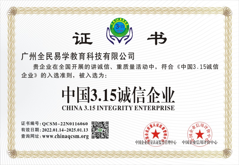 当前位置:首页 > 证书查询 > 广州全民易学教育科技有限公司
