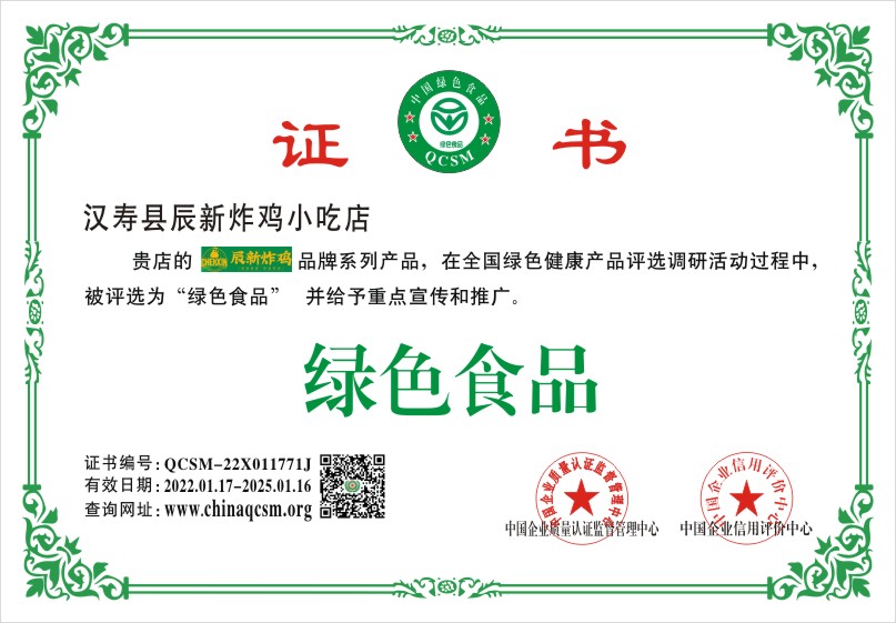 当前位置:首页 > 证书查询 > 汉寿县辰新炸鸡小吃店