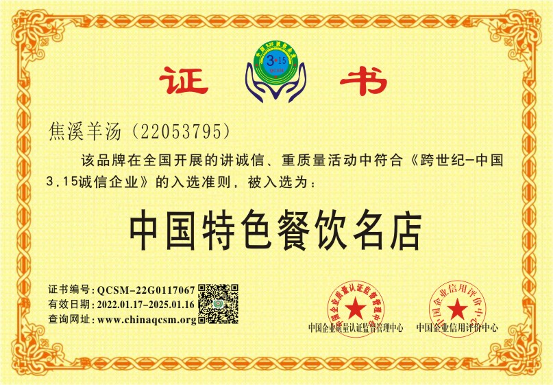 当前位置:首页 > 证书查询 > 焦溪羊汤