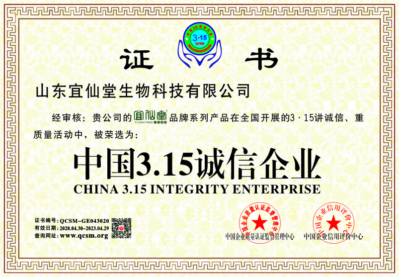 当前位置:首页 > 证书查询 > 山东宜仙堂生物科技有限公司