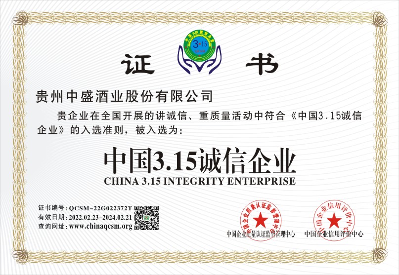 当前位置:首页 > 证书查询 > 贵州中盛酒业股份有限公司