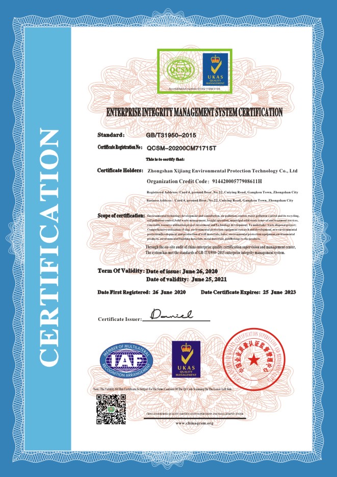 当前位置:首页 > 证书查询 > Zhongshan Xijiang Environmental Protection Technology Co., Ltd