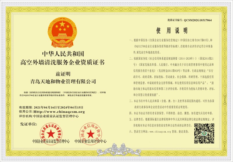 当前位置:首页 > 证书查询 > 青岛天地和物业管理有限公司