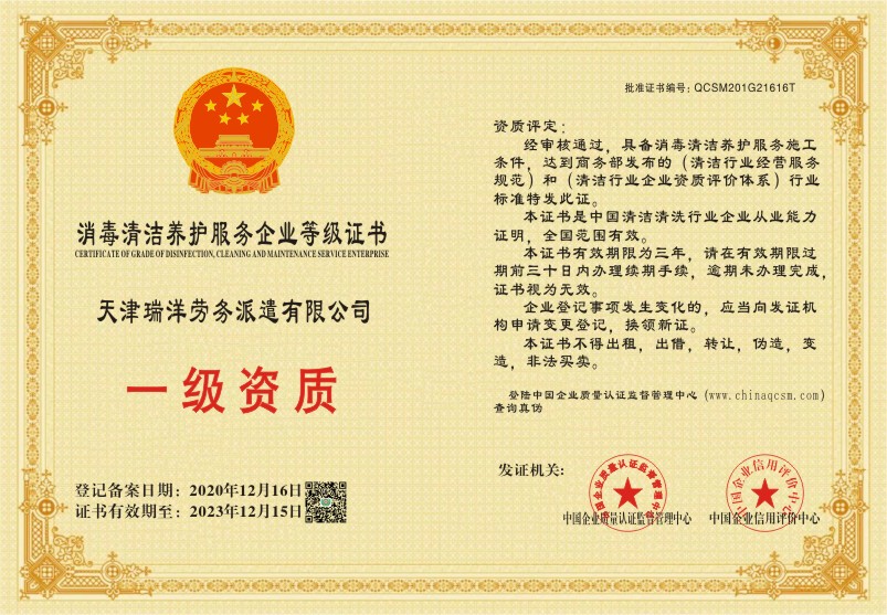 当前位置:首页 > 证书查询 > 天津瑞洋劳务派遣有限公司