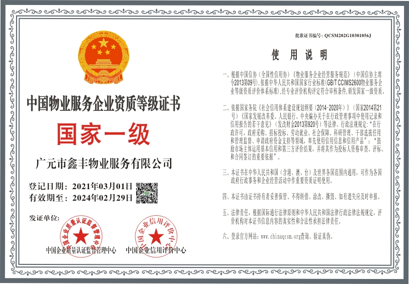 当前位置:首页 > 证书查询 > 广元市鑫丰物业服务有限公司