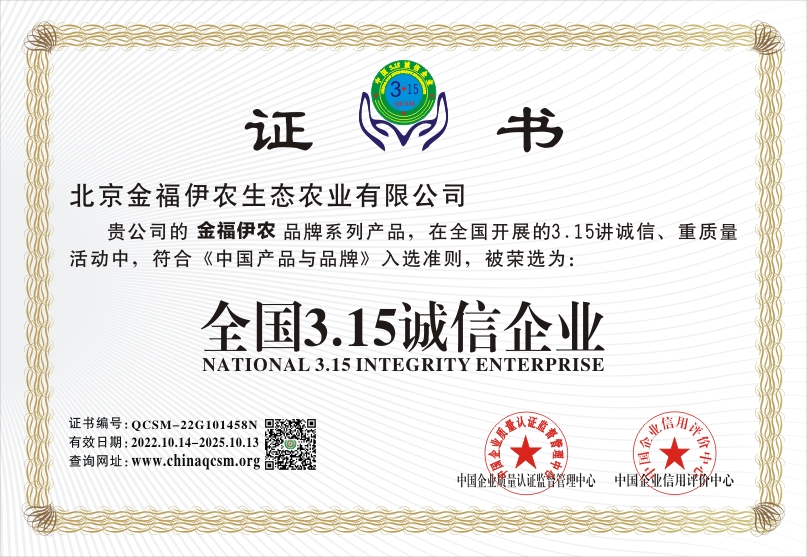当前位置:首页 > 证书查询 > 北京金福伊农生态农业有限公司
