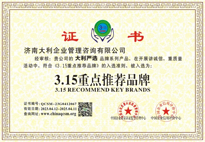 当前位置:首页 > 证书查询 > 济南大利企业管理咨询有限公司