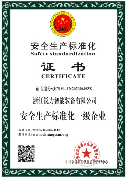 当前位置:首页 > 证书查询 > 浙江锐力智能装备有限公司