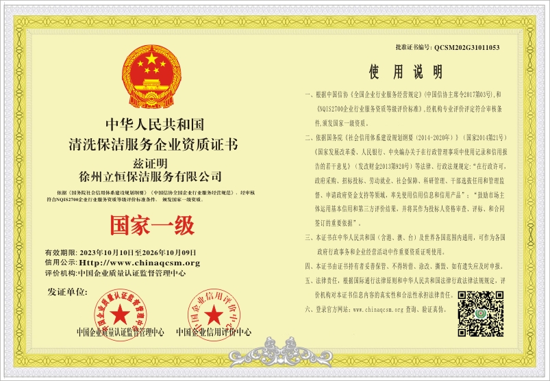当前位置:首页 > 证书查询 > 徐州立恒保洁服务有限公司