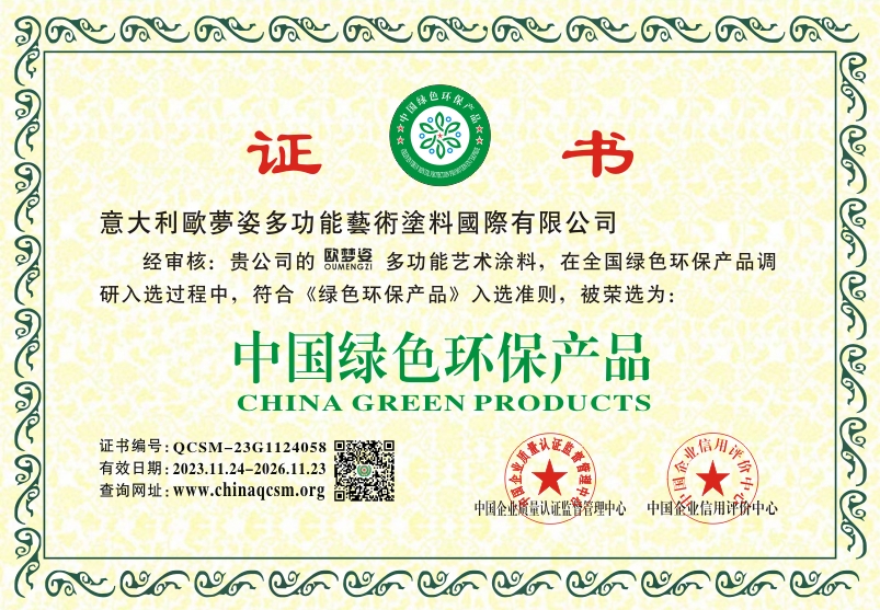 当前位置:首页 > 证书查询 > 意大利欧梦姿多功能艺术涂料国际有限公司