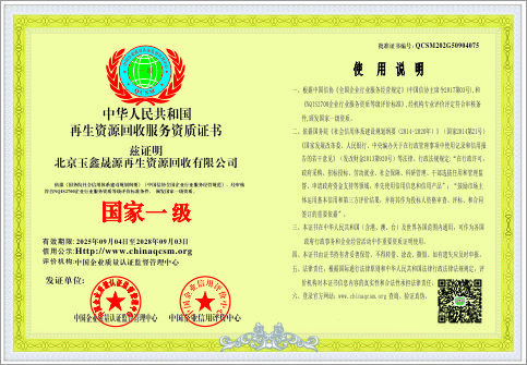 当前位置:首页 > 证书查询 > 北京玉鑫晟源再生资源回收有限公司