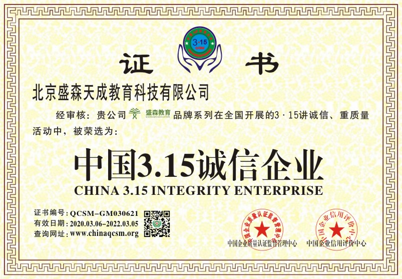 当前位置:首页 > 证书查询 > 北京盛森天成教育科技有限公司