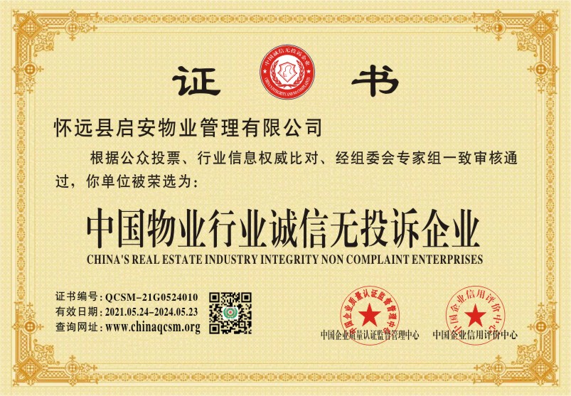 当前位置:首页 > 证书查询 > 怀远县启安物业管理有限公司